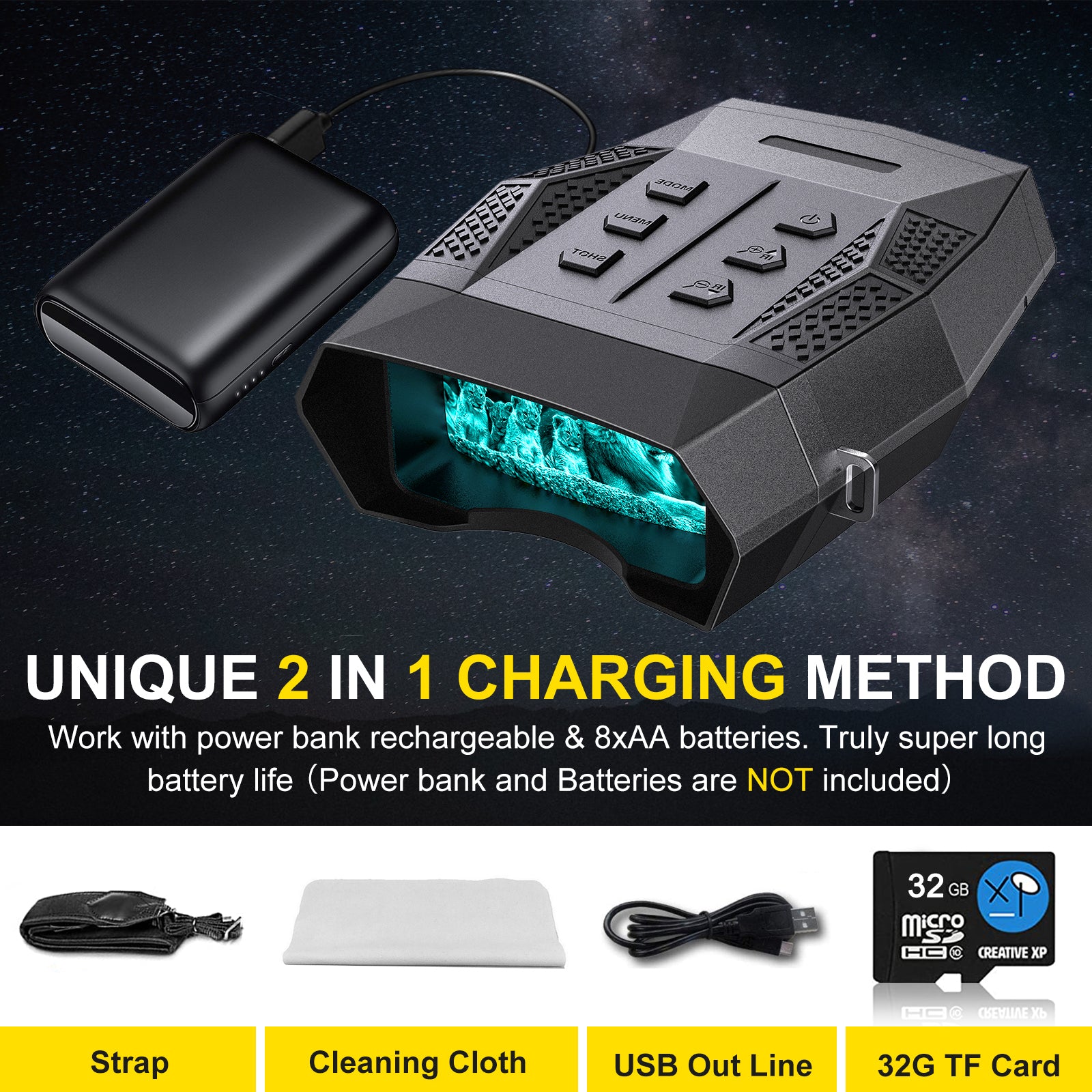 나이트 비전 쌍안경 2K 캠핑 장비 업그레이드 적외선 디지털 사냥 망원경